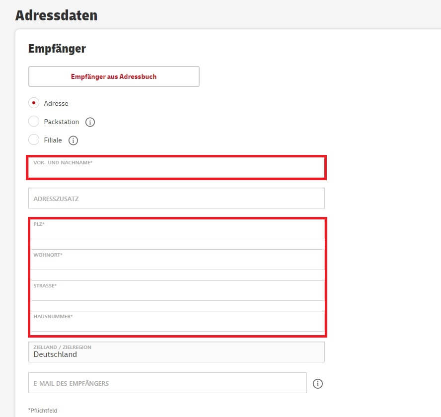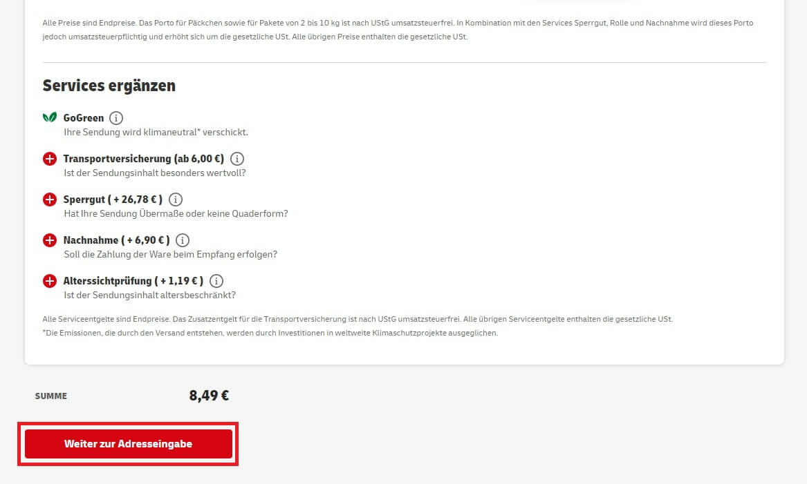 5) 이후 스크롤을 내려 맨 하단부에 'Weiter zur Adresseingabe'.