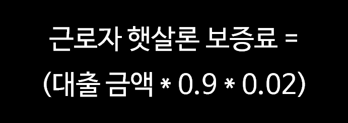 근로자 햇살론 보증료 = (대출 금액 * 0.9 * 0.02)