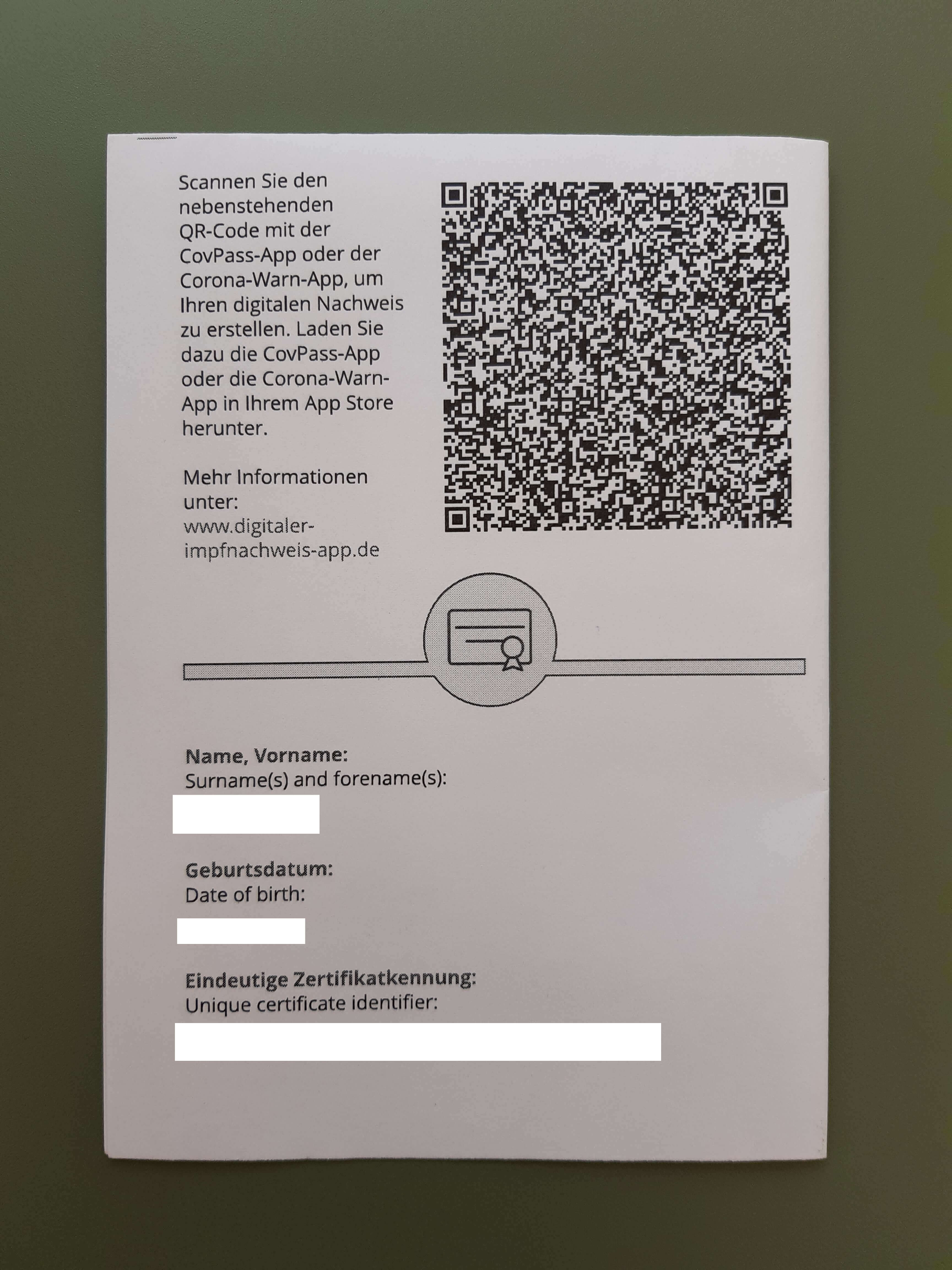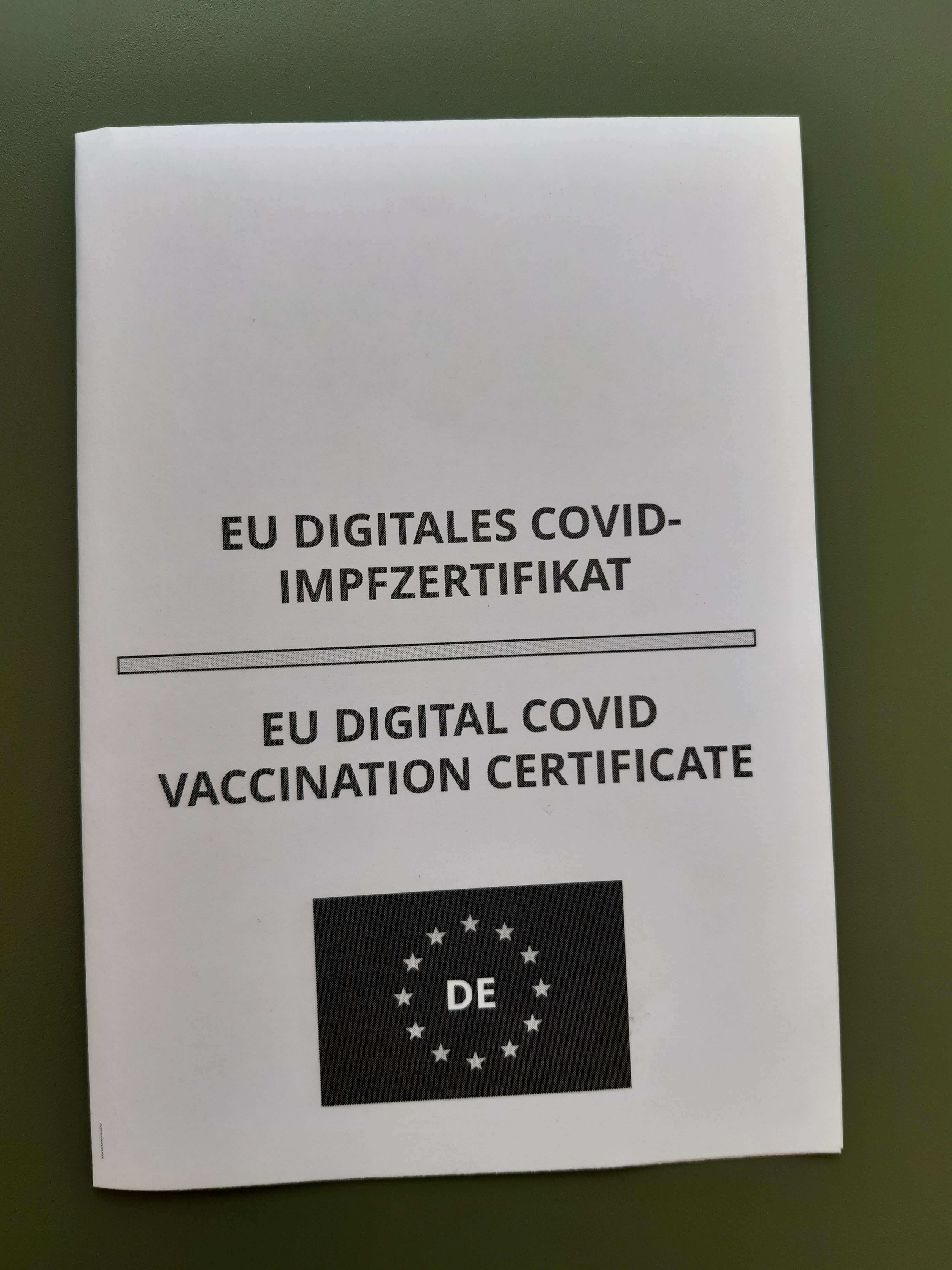 독일에서는 약국에서 코로나 백신 디지털 패스를 만들기 위한 문서를 생성해주고 있으며 비용은 무료입니다.