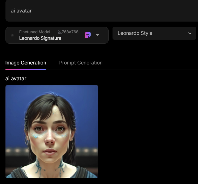 또한 별도로 Leonardo Style이라는 옵션을 제공하여 레오나르도 ai가 추구하는 스타일 (만화 게임 캐릭터)에 가까운 ai 아바타 또는 ai 이미지를 생성할 수 있도록 돕고 있습니다.