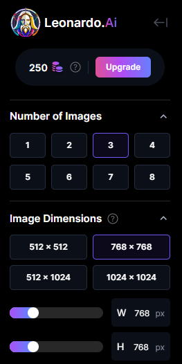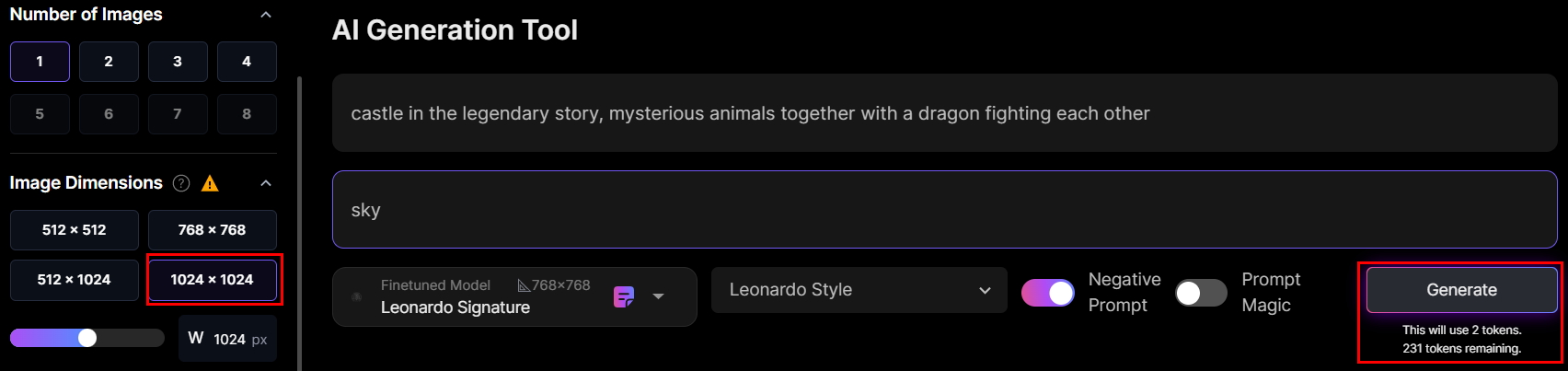 leonardo ai를 사용하여 ai 이미지를 생성 시는 기본적으로 1개의 토큰이 소요되는데, 레오나르도 ai에서는 매일 사용자에게 250개의 토큰을 제공합니다.