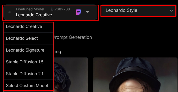 6. 레오나르도 ai 사용법 중 가장 중요한 부분 중 하나는 바로 ai 아바타 또는 ai 이미지 생성 시 사용할 적절한 모델을 선택하는 것인데, leonardo ai에서는 기본적으로 'Leonardo Creative', 'Leonardo Signature', 'Stable Diffusion 2.1'를 제공하고 있습니다.