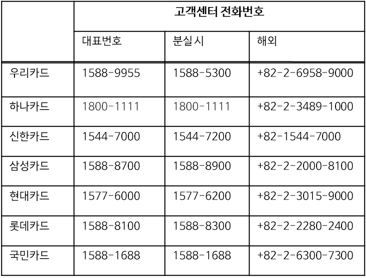 이번 포스팅에서는 주요 카드사 고객센터 전화번호를 한눈에 볼 수 있도록 정리한 내역을 공유드리고자 합니다.