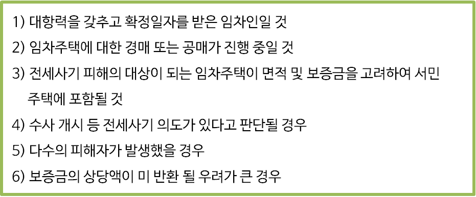 전세사기 피해자로 인정받기 위한 전세사기 특별법 조건 6가지를 살펴보면 아래와 같습니다.