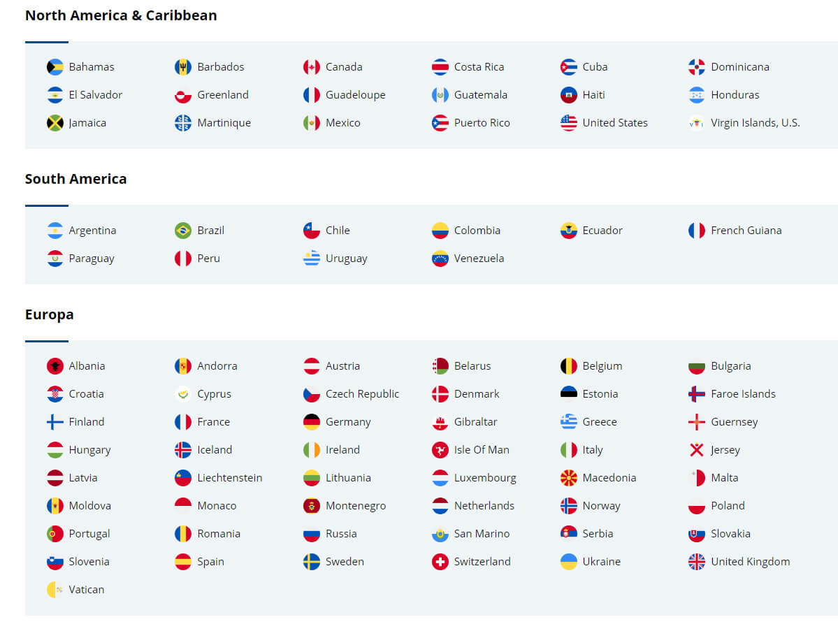 해외 우편번호를 찾는 두번째 방법은 우편번호를 찾으시려는 국가와 지역을 메뉴얼로 선택하시는 것인데, 소개해드린 사이트에서는 아래와 같이 각 대륙의 대표적인 (?) 나라가 표시되어 있어 관심있으신 국가를 클릭하시고 이후 상세 지역명을 선택하시는 방법으로 해외 우편번호를 검색하실 수 있습니다.