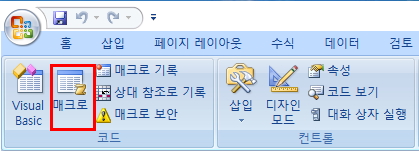 7) 다시 메인 메뉴로 돌아오셔서 '개발도구 → 매크로'를 선택합니다.