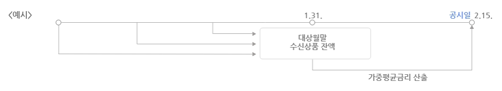일례로, 작년에 정기예금을 판매하고 아직 정기예금을 찾아가지 않은 예금 상품에 대한 것 또는 만기가 아직 도래하지 않은 상품 등이 해당 코픽스 잔액 기준 코픽스 기준금리 계산에 포함되는 것입니다.