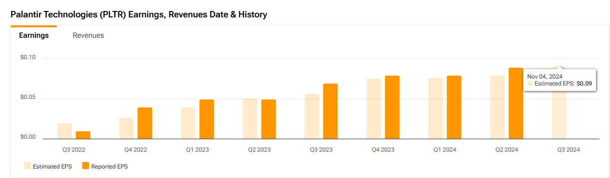 3분기 팔란티어 실적예상 중 eps의 경우, 0.09달러 예상으로 지난 분기와 매우 유사할 것으로 예측되고 있습니다.
