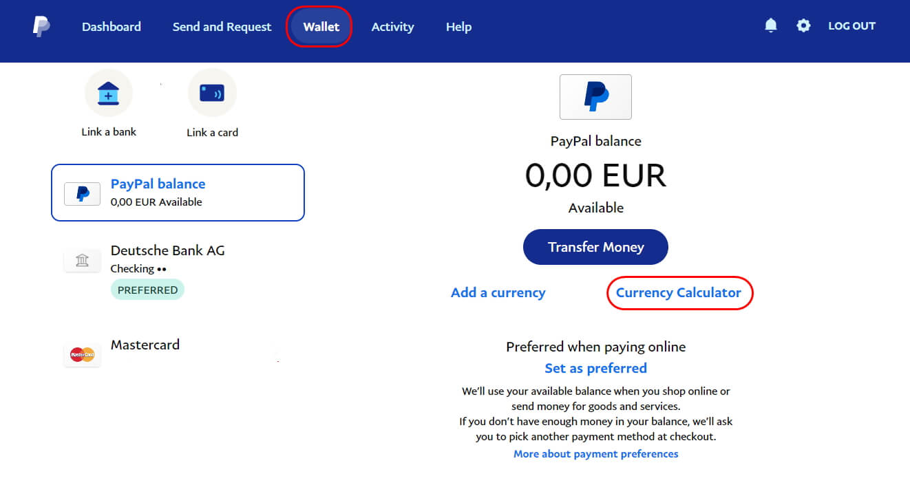 이를 위해 아래 그림에서 처럼 'Wallet'으로 이동하신 후, 오른쪽 화면에서 Currency Calculator를 선택합니다.