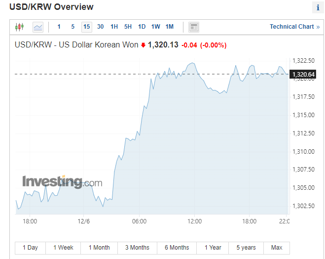 1) 12월 6일 기본 환율: 1 달러 = 1,320.64 달러
