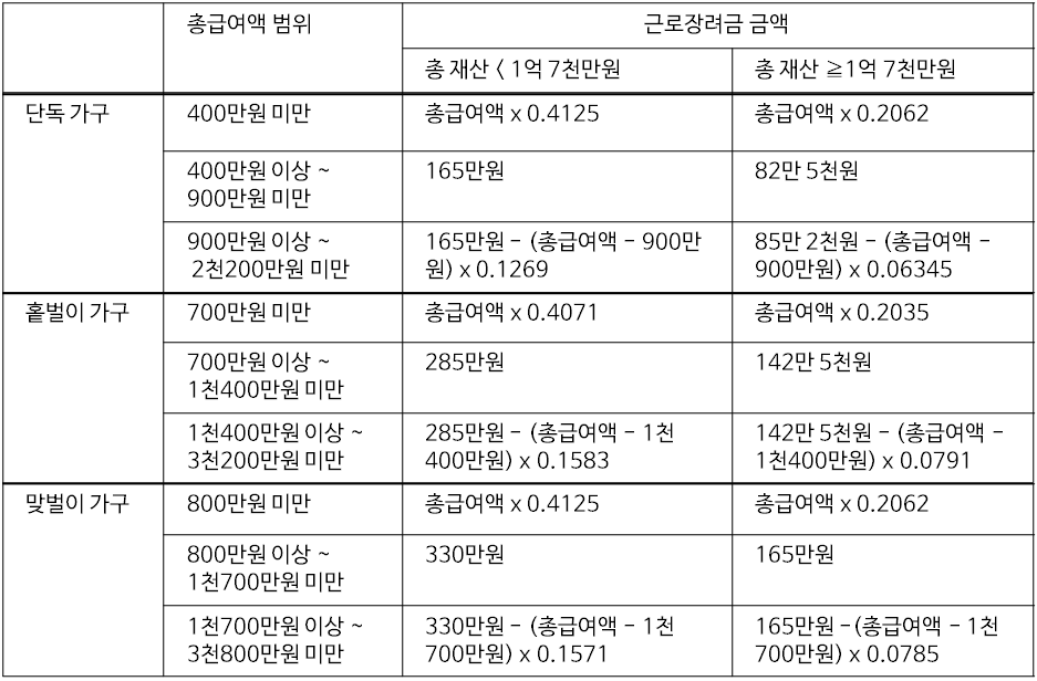 2024 근로장려금 금액 계산