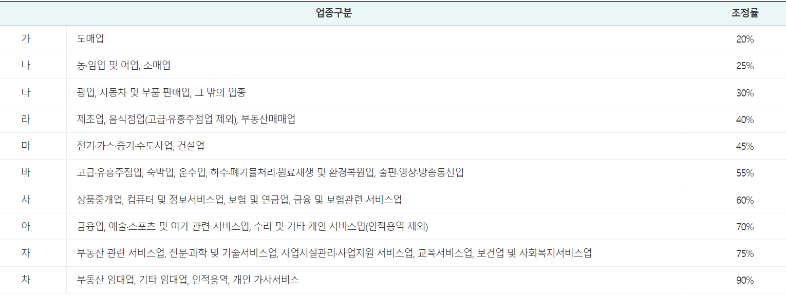 덧붙여 위 2024 근로장려금 조건에서 총소득이라 함은 근로소득 뿐만 아니라 사업소득, 종교인소득, 이자/배당/연금 소득 그리고 기타 소득을 모두 합산한 것을 의미하는데, 사업소득의 경우 소득에 업종별 조정률을 적용하여 최종 산정됩니다.