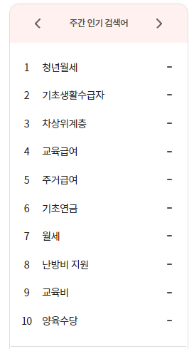 따라서 이러한 현실속에 최소한 주요 정부지원금 또는 복지서비스 적용 여부를 판단하는 것이 중요한데, 주요 정부지원금 및 복지서비스를 확인하는 방법은 바로 복지로 사이트의 검색순위를 활용하는 것입니다.